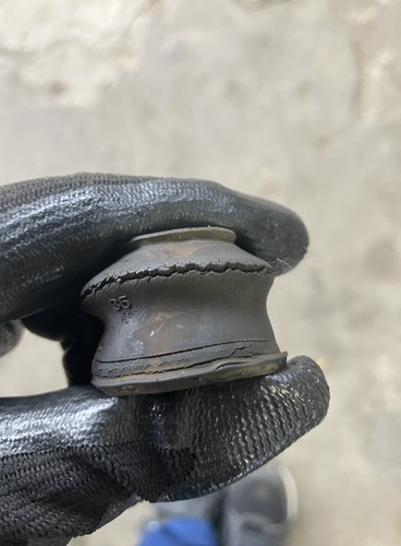 付いていたブーツがこちら。大きなヒビが入っています。