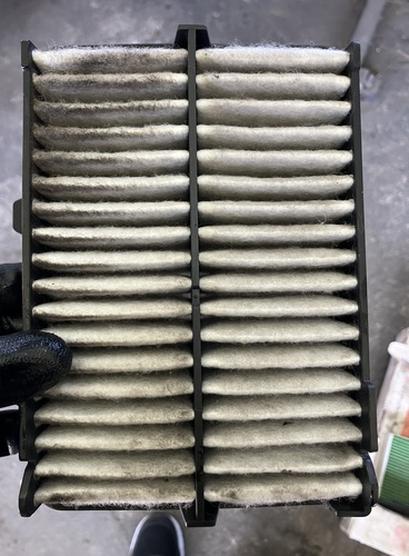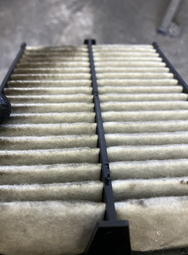 外したエアエレメントがこちら。汚れが詰まっているのがわかります。