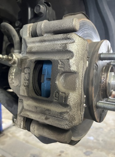 日産・デイズルークスの車検整備中にフロントディスクパッドが減っていたのを発見したので交換しました。